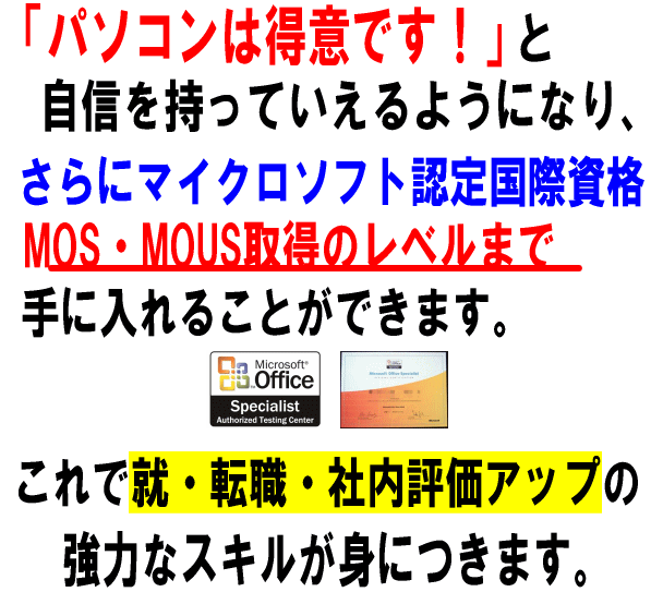 面接で「パソコンはできます!」と自信を持って言えるようになりたい。